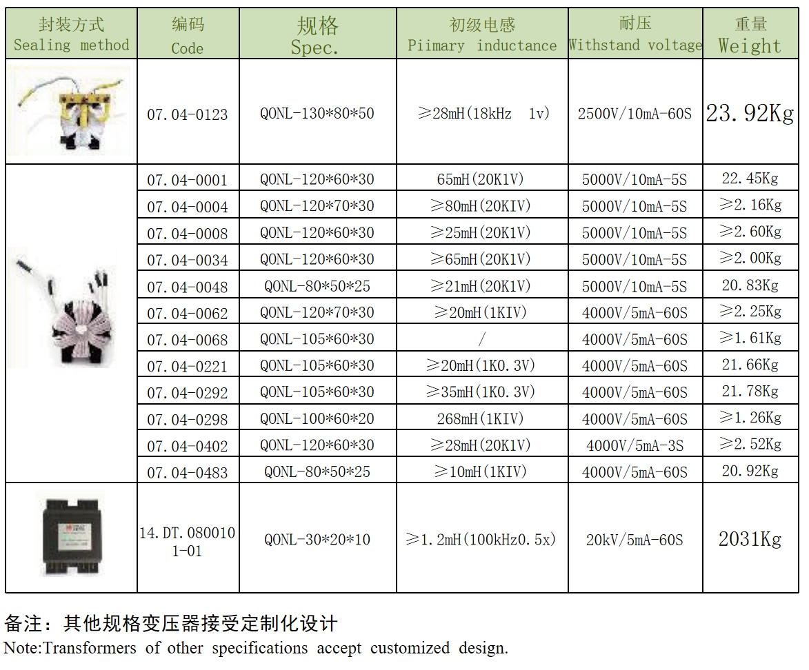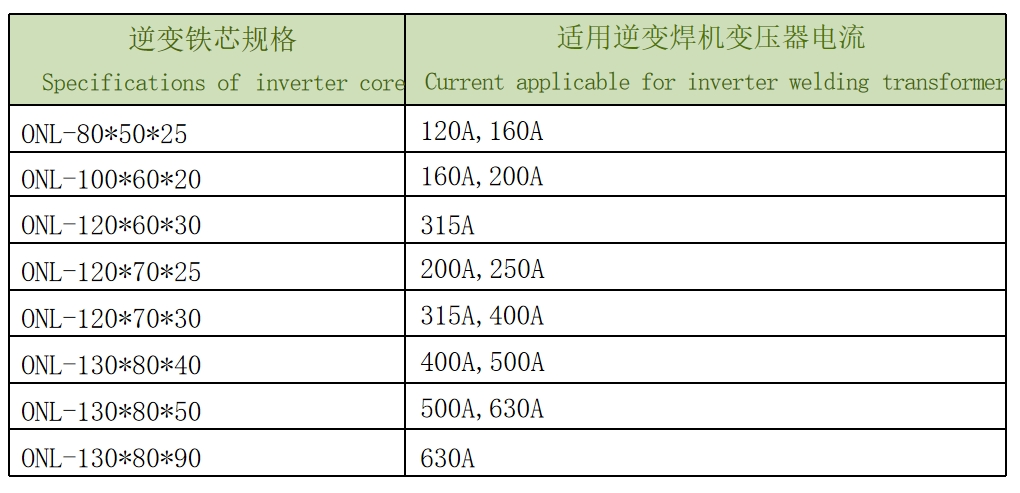 1. 逆变焊机变压器铁芯选型表(Selection table of transformer core for inverter welder)