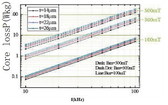 (Core Loss Comparison of Nanocrystalline Cores Made of Different Thickness Ribbon)